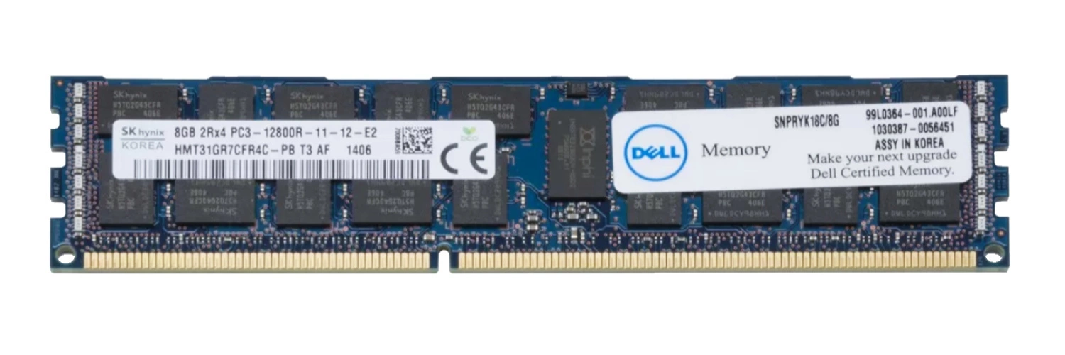 - RAM-geheugenkit 8 GB gewijd voor DELL DELL bestaat uit 1x 8GB PC3-12800 DDR3 1600MHz ECC REGISTERED | SNPRYK18C/8G. ESUS IT geeft u 100% garantie dat het aangeboden product origineel is.