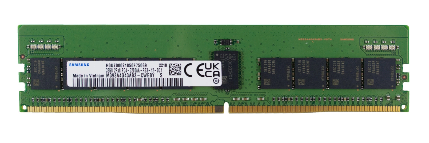 - RAM-geheugenkit 32 GB bestaat uit 1x 32GB 2Rx8 PC4-25600 DDR4 3200MHz 1.2 V ECC REGISTERED | M393A4G43AB3-CWE