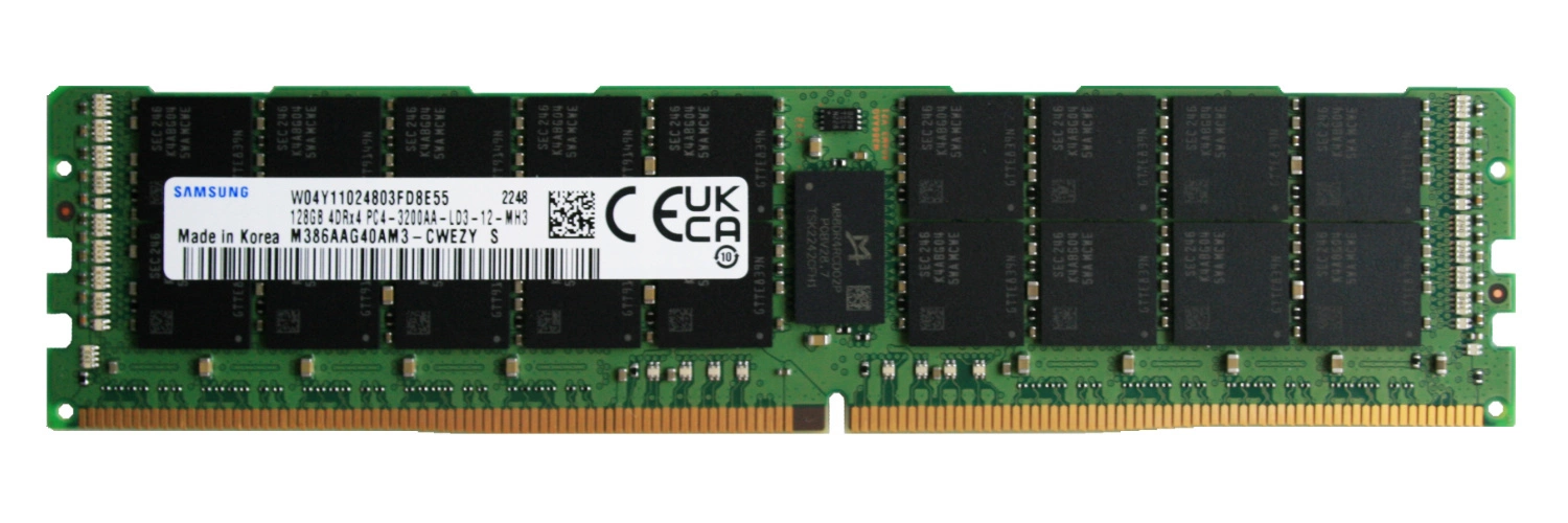 - RAM-geheugenkit 128 GB bestaat uit 1x 128GB 4Rx4 PC4-25600 DDR4 3200MHz 1.2 V ECC LOAD REDUCED DIMM | M386AAG40BM3-CWE