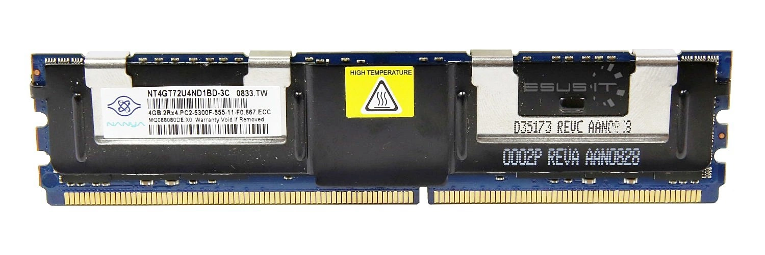 - RAM-geheugenkit 4 GB bestaat uit 1x 4GB PC2-5300 DDR2 667MHz 1.8 V ECC FULLY BUFFERED DIMM | NT4GT72U4ND1BD-3C