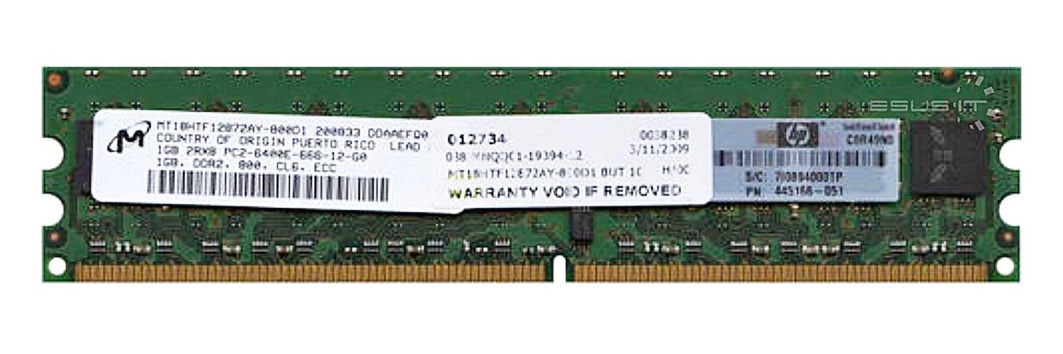 - RAM-geheugenkit 1GB bestaat uit 1x 1GB PC2-6400 DDR2 800MHz 1.8 V ECC UNBUFFERED | MT18HTF12872AY-800D1