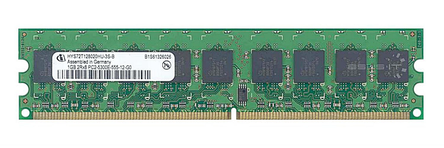 - RAM-geheugenkit 1 GB bestaat uit 1x 1GB PC2-5300 DDR2 667MHz 1.8 V ECC REGISTERED | HYS72T128020HU-3S-B