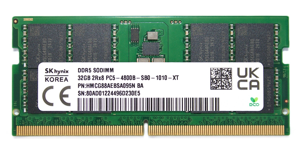 - RAM-geheugenkit 32GB bestaat uit 1x 32 GB SO-DIMM DDR5 4800MHz PC5-38400 | HMCG88AEBSA095N