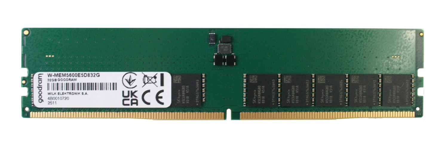 RAM-geheugen 1x 32GB GoodRAM ECC UNBUFFERED DDR5 2Rx8 5600MHz PC5-44800 UDIMM | W-MEM5600E5D832G
