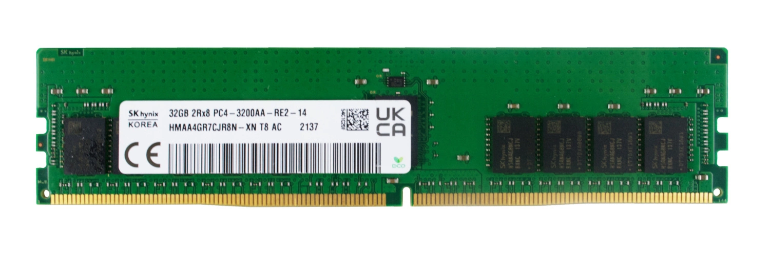 - RAM-geheugenkit 32 GB bestaat uit 1x 32GB 2Rx8 PC4-25600 DDR4 3200MHz 1.2 V ECC REGISTERED | HMAA4GR7DJR8N-XN