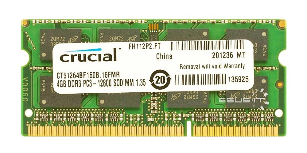 - RAM-geheugenkit 4 GB bestaat uit 1x 4GB SO-DIMM DDR3 1600MHz PC3-12800 | CT51264BF160B