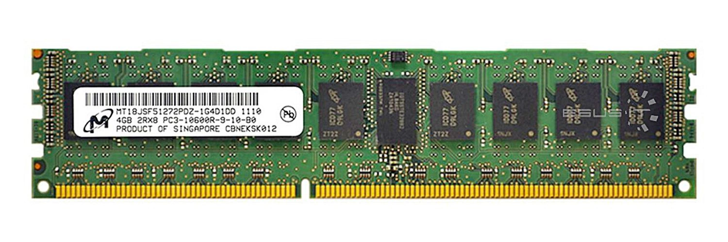 - RAM-geheugenkit 4 GB bestaat uit 1x 4GB PC3-10600 DDR3 1333MHz 1.5 V ECC REGISTERED | MT18JSF51272PDZ-1G4