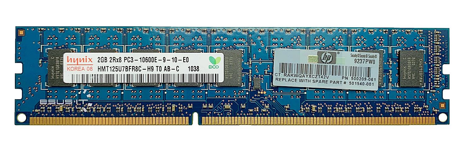 - RAM-geheugenkit 2GB bestaat uit 1x 2GB 2Rx8 PC3-10600 DDR3 1333MHz 1.5 V ECC UNBUFFERED | HMT125U7BFR8C-H9