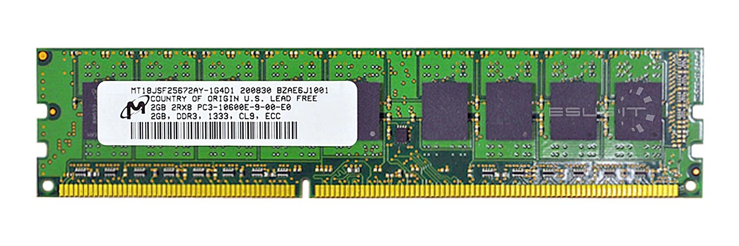 - RAM-geheugenkit 2GB bestaat uit 1x 2GB PC3-10600 DDR3 1333MHz 1.5 V ECC UNBUFFERED | MT18JSF25672AY-1G4D1
