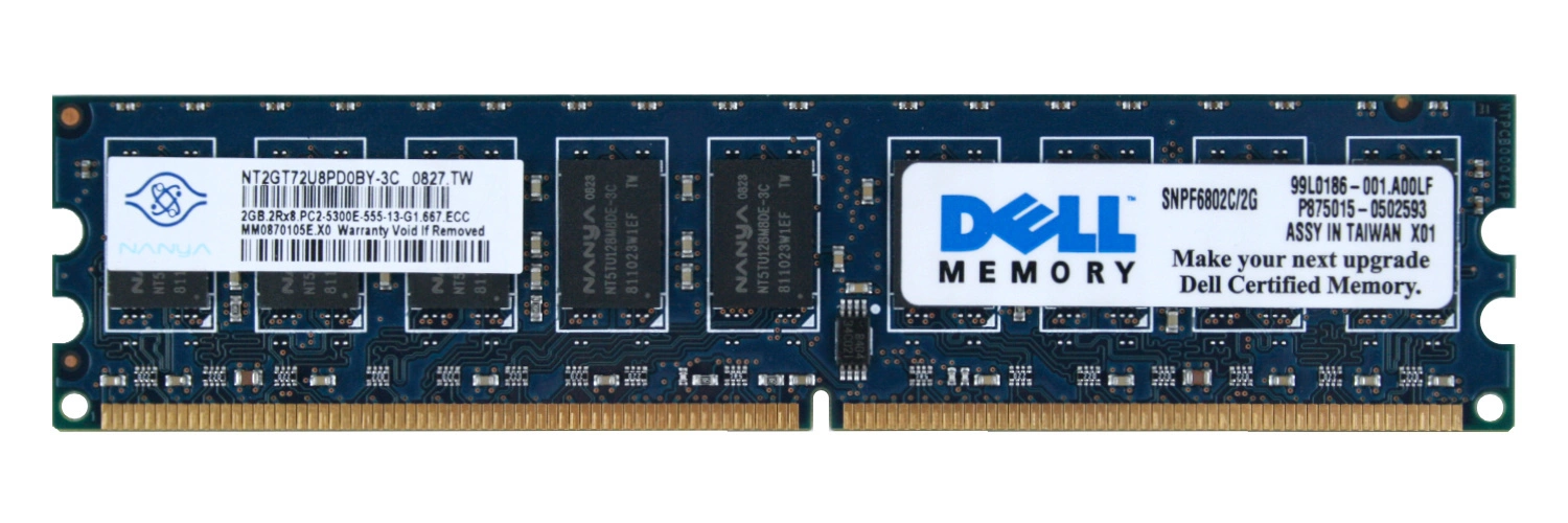 - RAM-geheugenkit 2 GB gewijd voor DELL DELL bestaat uit 1x 2GB PC2-5300 DDR2 667MHz ECC UNBUFFERED | SNPF6802C/2G. ESUS IT geeft u 100% garantie dat het aangeboden product origineel is.