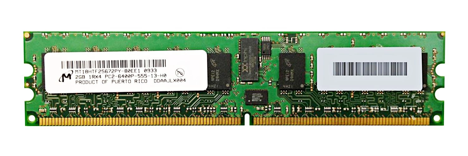 - RAM-geheugenkit 2 GB bestaat uit 1x 2GB 1Rx4 PC2-6400 DDR2 800MHz 1.8 V ECC REGISTERED | MT18HTF25672PY-80EG1
