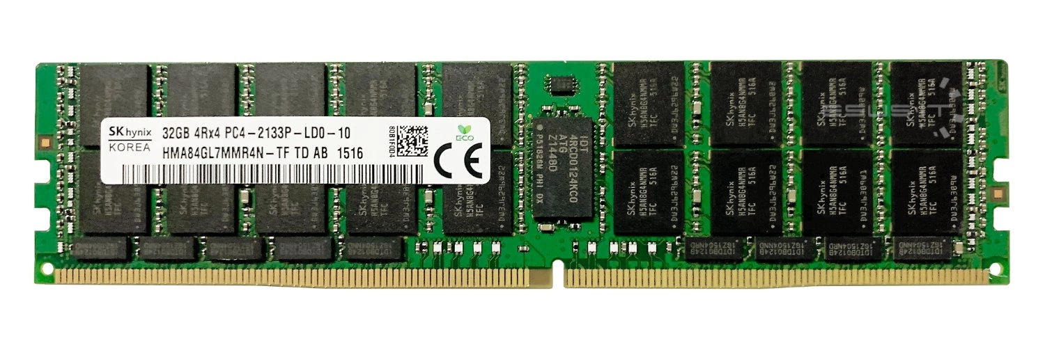 • RAM-geheugenkit 32 GB bestaat uit 1x 32GB PC4-17000 DDR4 2133MHz 1.2 V ECC LOAD REDUCED DIMM | HMA84GL7MMR4N-TF