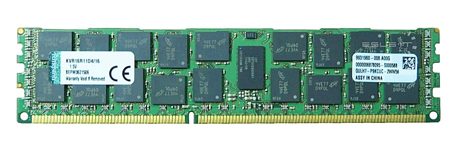 - RAM-geheugenkit 16 GB bestaat uit 1x 16GB PC3-12800 DDR3 1600MHz 1.5 V ECC REGISTERED | KVR16R11D4/16