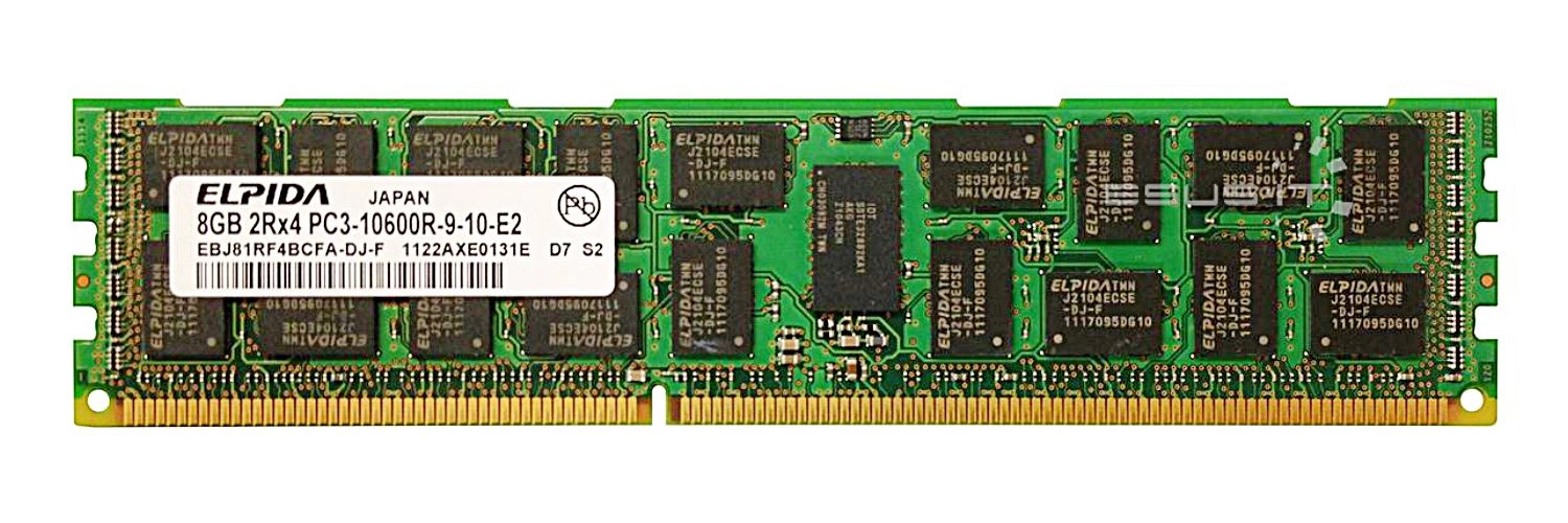 • RAM-geheugenkit 8 GB bestaat uit 1x 8GB PC3-10600 DDR3 1333MHz 1.5 V ECC REGISTERED | EBJ81RF4BCFA-DJ-F