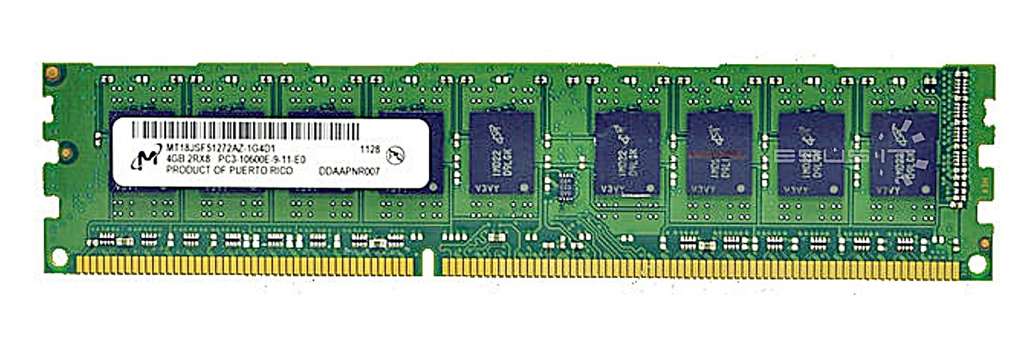 - RAM-geheugenkit 4GB bestaat uit 1x 4GB PC3-10600 DDR3 1333MHz 1.5 V ECC UNBUFFERED | MT18JSF51272AZ-1G4