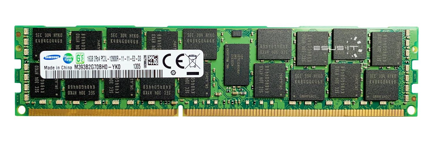- RAM-geheugenkit 16 GB bestaat uit 1x 16GB 2Rx4 PC3-12800 DDR3 1600MHz 1.35 / 1.5 V ECC REGISTERED | M393B2G70BH0-YK0