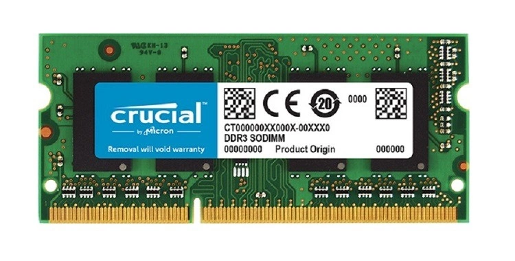 - RAM-geheugenkit 4 GB bestaat uit 1x 4GB SO-DIMM DDR3 1600MHz PC3-12800 | CT51264BF160BJ