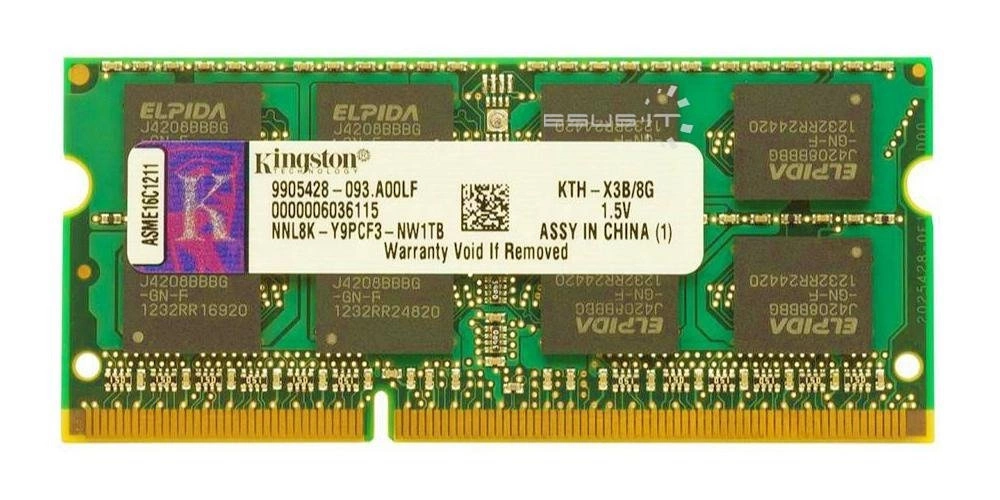 - RAM-geheugenkit 8 GB bestaat uit 1x 8GB SO-DIMM DDR3 1333MHz PC3-10600 | KTH-X3B/8G