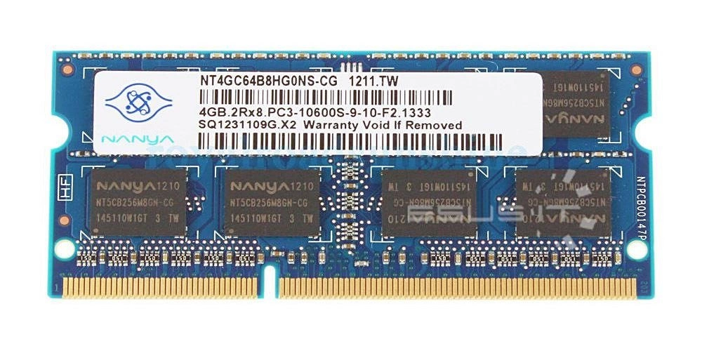 - RAM-geheugenkit 4 GB bestaat uit 1x 4GB SO-DIMM DDR3 1333MHz PC3-10600 | NT4GC64B8HG0NS-CG