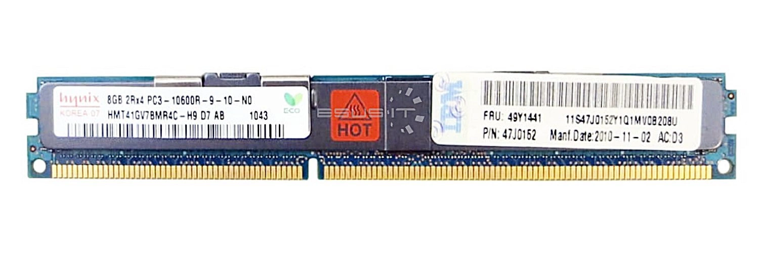 • RAM-geheugenkit 8 GB bestaat uit 1x 8GB PC3-10600 DDR3 1333MHz 1.5 V ECC REGISTERED | HMT41GV7BMR4C-H9