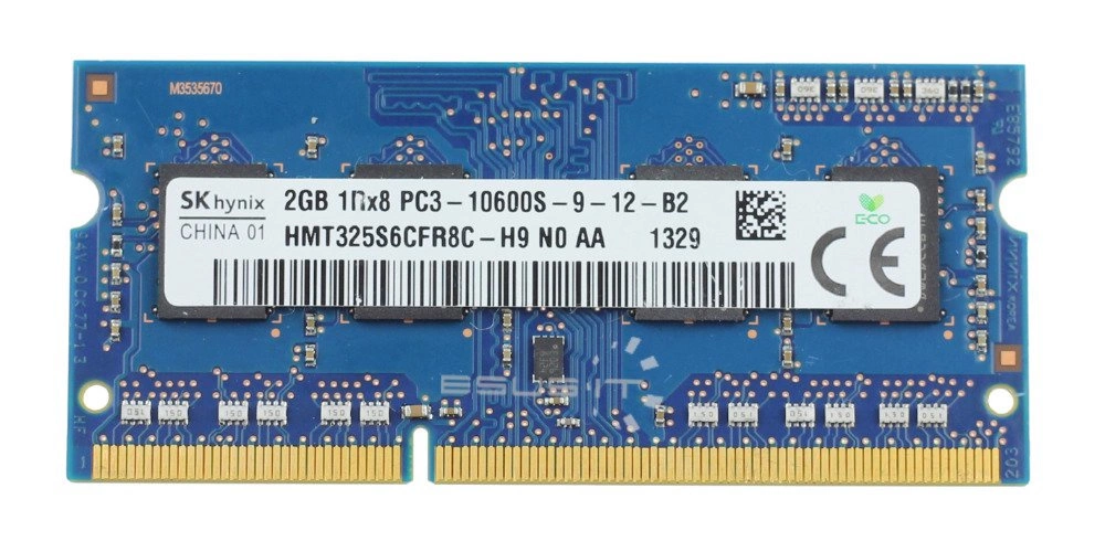 - RAM-geheugenkit 2 GB bestaat uit 1x 2GB SO-DIMM DDR3 1333MHz PC3-10600 | HMT325S6CFR8C-H9