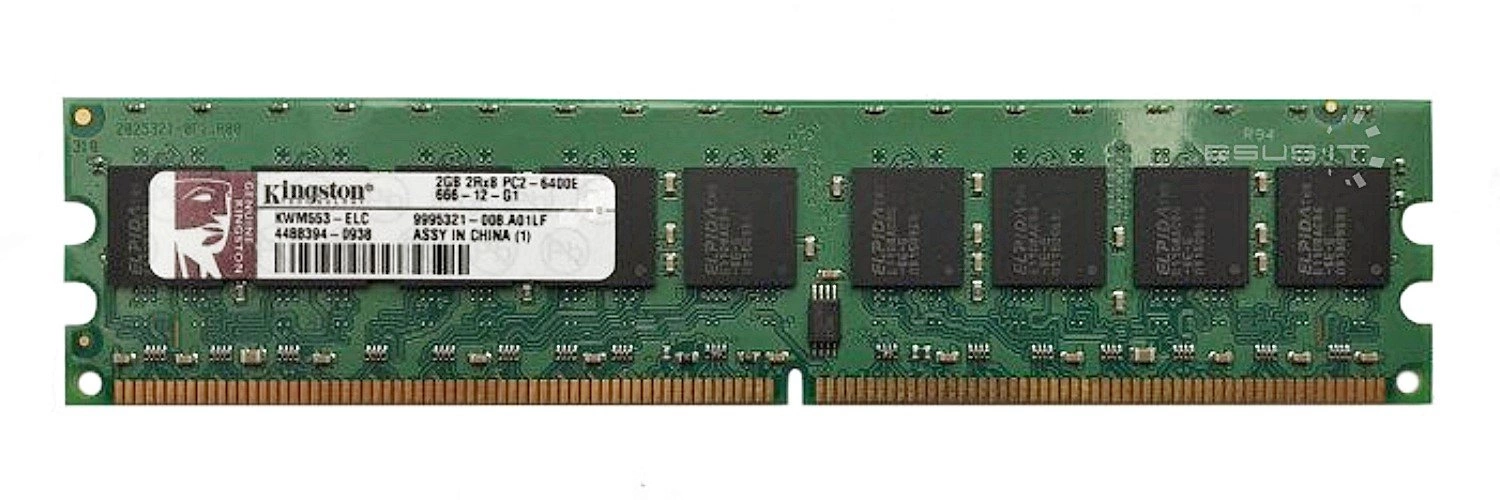 - RAM-geheugenkit 2GB bestaat uit 1x 2GB PC2-6400 DDR2 800MHz 1.8 V ECC UNBUFFERED | KWM553-ELC