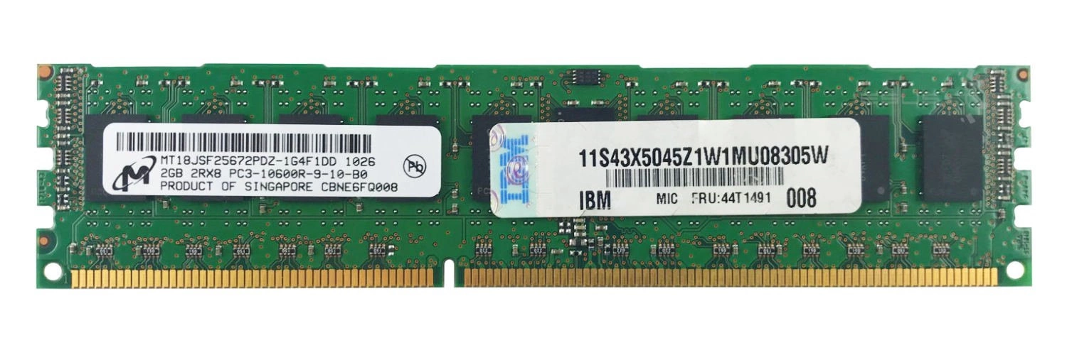 - RAM-geheugenkit 2 GB bestaat uit 1x 2GB PC3-10600 DDR3 1333MHz 1.5 V ECC REGISTERED | MT18JSF25672PDZ-1G4