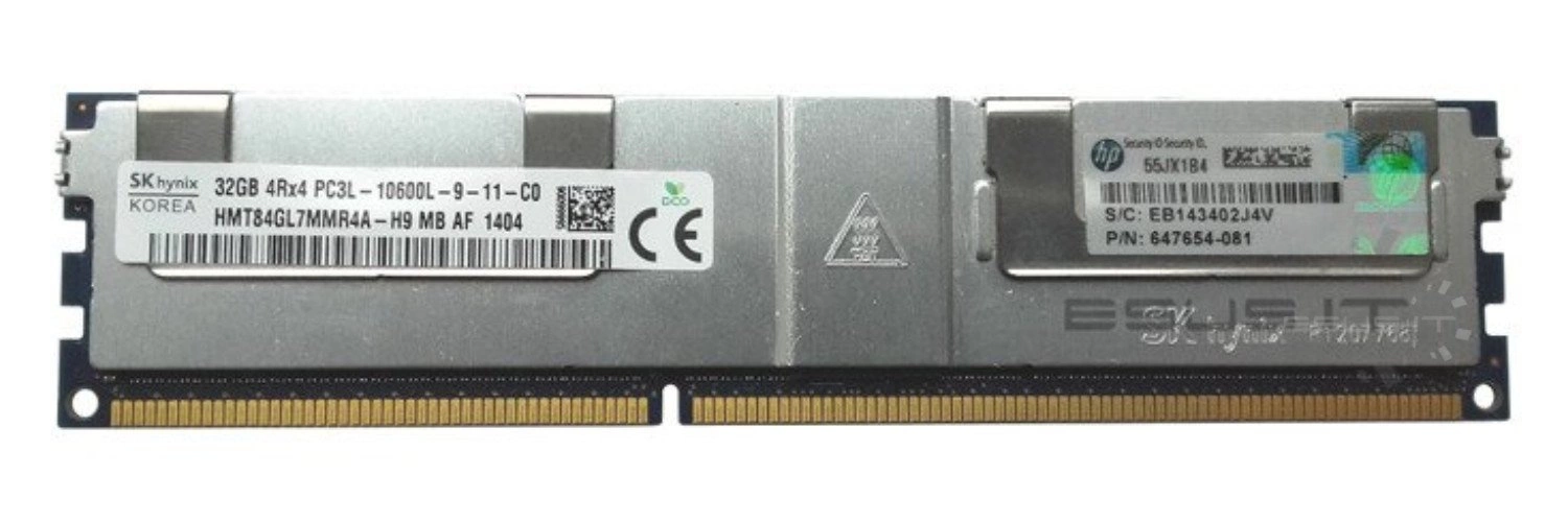 - RAM-geheugenkit 32 GB bestaat uit 1x 32GB PC3-10600 DDR3 1333MHz 1.35 / 1.5 V ECC LOAD REDUCED DIMM | HMT84GL7MMR4A-H9