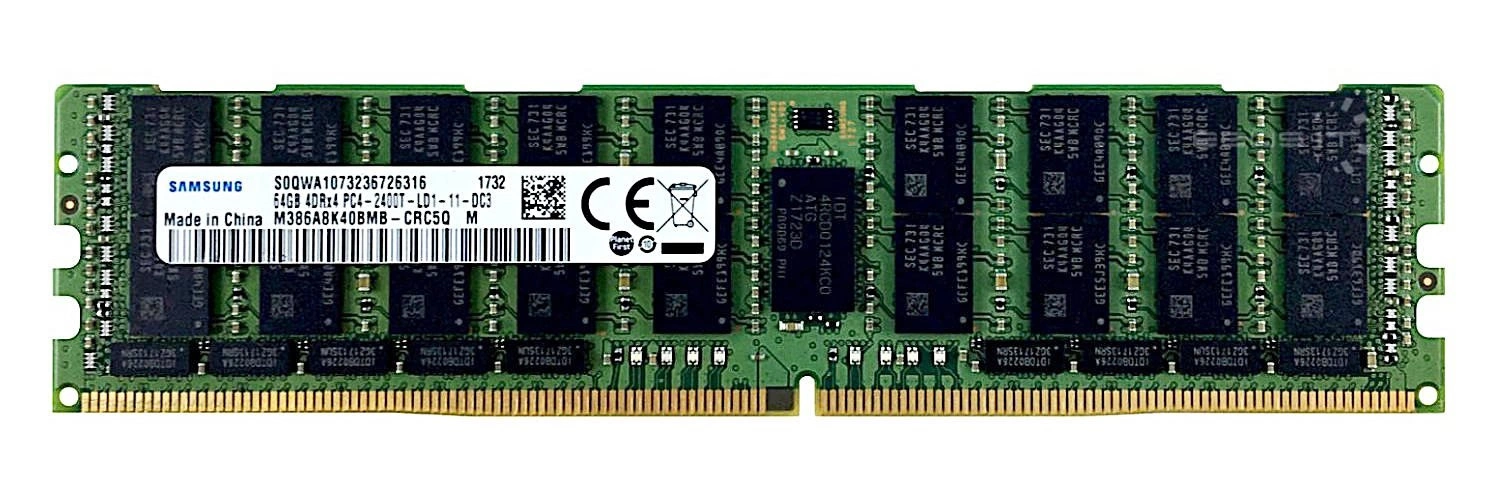 - RAM-geheugenkit 64 GB bestaat uit 1x 64GB PC4-19200 DDR4 2400MHz 1.2 V ECC LOAD REDUCED DIMM | M386A8K40BMB-CRC
