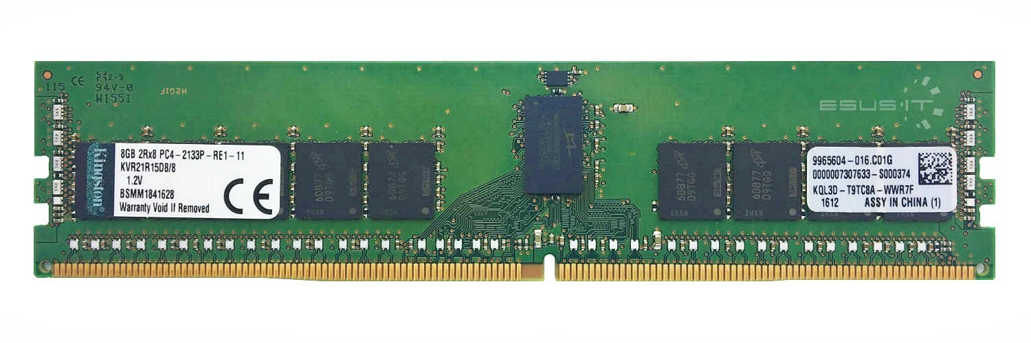 • RAM-geheugenkit 8 GB bestaat uit 1x 8GB 2Rx8 PC4-17000 DDR4 2133MHz 1.2 V ECC REGISTERED | KVR21R15D8/8