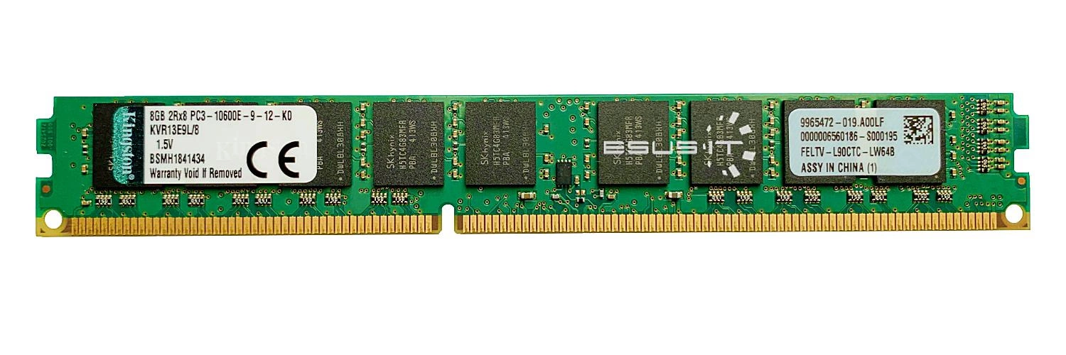 - RAM-geheugenkit 8GB bestaat uit 1x 8GB 2Rx8 PC3-10600 DDR3 1333MHz 1.5 V ECC UNBUFFERED | KVR13E9L/8