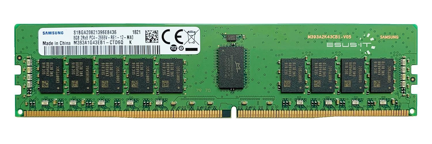 - RAM-geheugenkit 8 GB bestaat uit 1x 8GB 2Rx8 PC4-21300 DDR4 2666MHz 1.2 V ECC REGISTERED | M393A1G43EB1-CTD