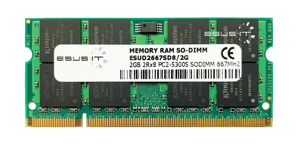 - RAM-geheugenkit 2 GB bestaat uit 1x 2GB SO-DIMM DDR2 667MHz PC2-5300 | ESUD2667SD8/2G