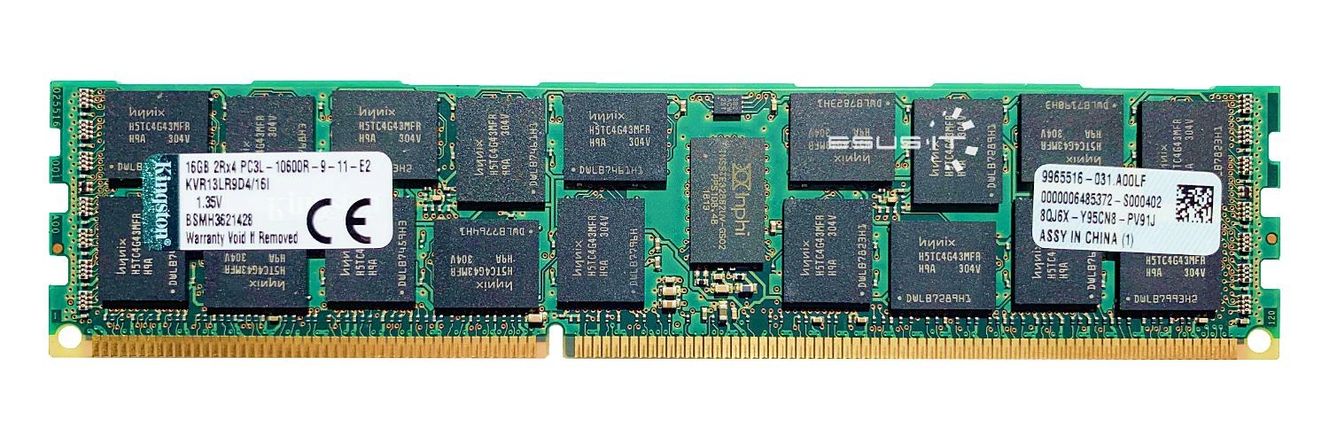 - RAM-geheugenkit 16 GB bestaat uit 1x 16GB 2Rx4 PC3-10600 DDR3 1333MHz 1.35 / 1.5 V ECC REGISTERED | KVR13LR9D4/16I