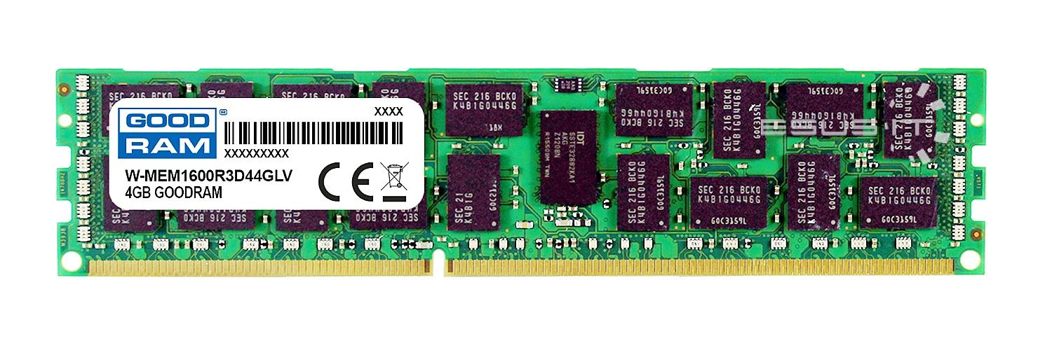 RAM-geheugen 1x 4GB GoodRAM ECC REGISTERED DDR3 2Rx4 1600MHz PC3-12800 RDIMM | W-MEM1600R3D44GLV