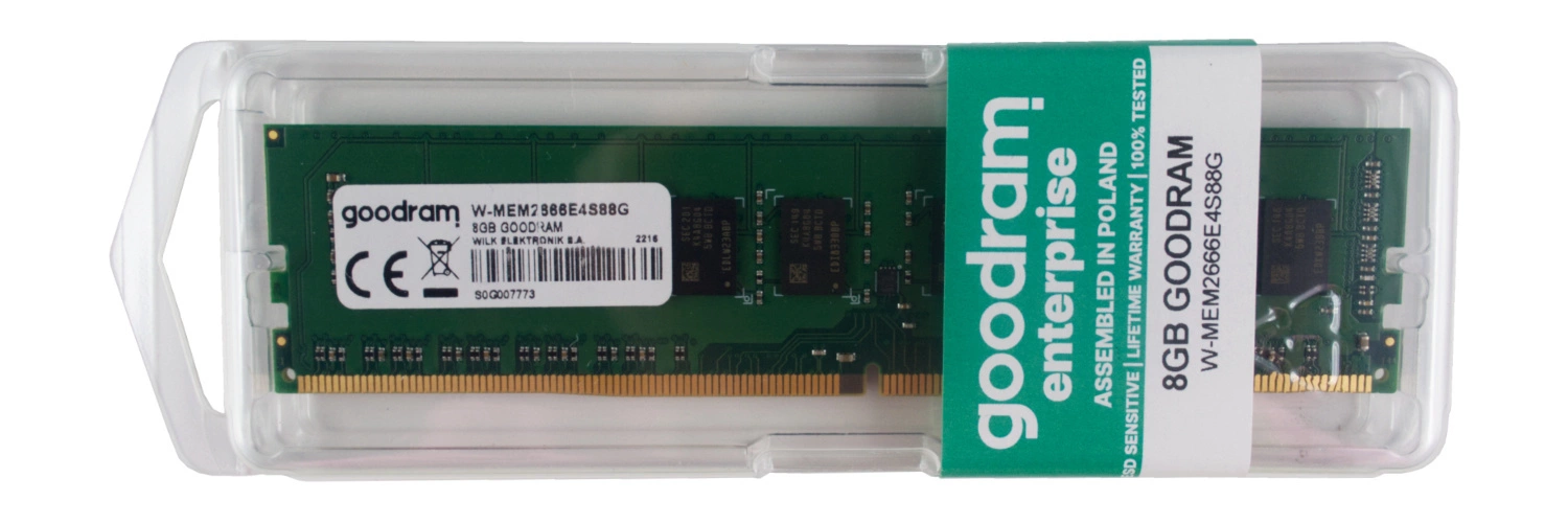 RAM-geheugen 1x 8GB GoodRAM ECC UNBUFFERED DDR4 1Rx8 2666MHz PC4-21300 UDIMM | W-MEM2666E4S88G