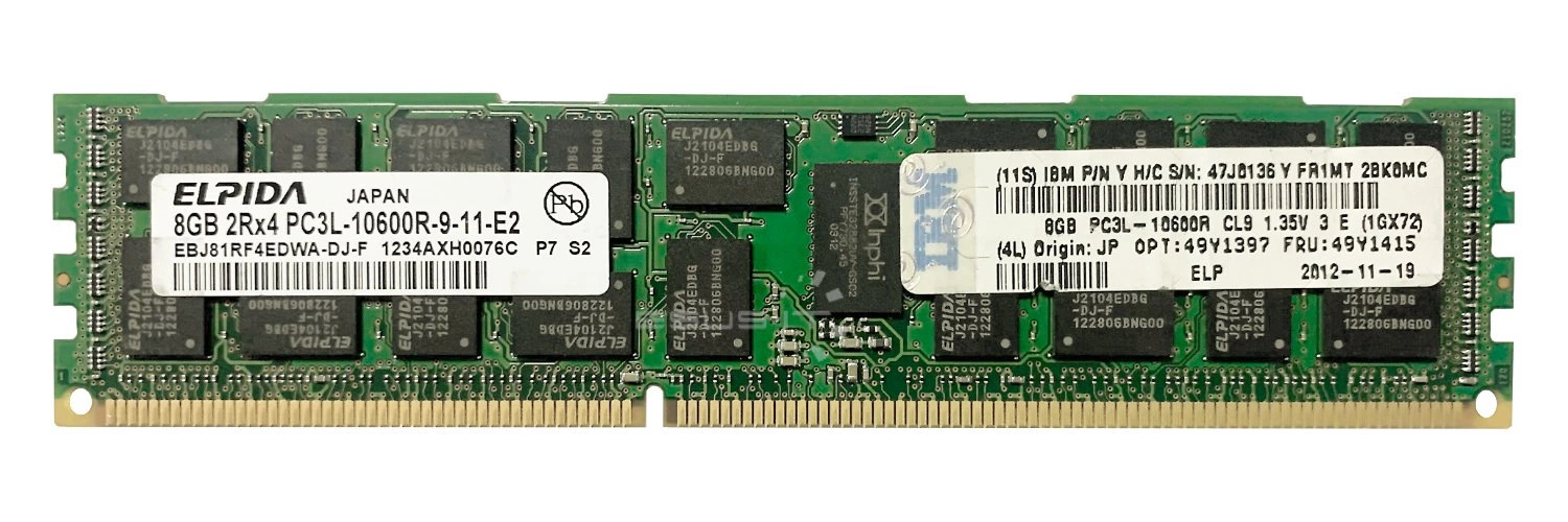 - RAM-geheugenkit 8 GB bestaat uit 1x 8GB PC3-10600 DDR3 1333MHz 1.5 V ECC REGISTERED | EBJ81RF4EDWA-DJ-F