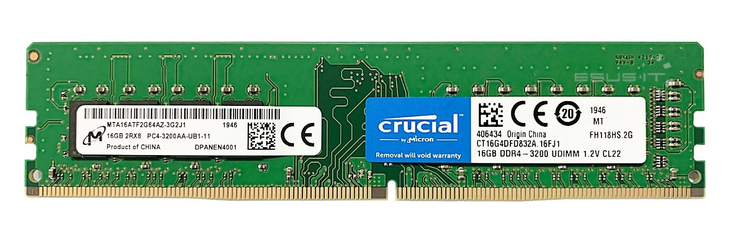 - RAM-geheugenkit 16 GB bestaat uit 1x 16GB PC4-25600 DDR4 3200MHz NON-ECC UNBUFFERED DIMM | CT16G4DFD832A