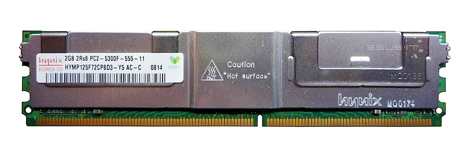 - RAM-geheugenkit 2 GB bestaat uit 1x 2GB PC2-5300 DDR2 667MHz 1.8 V ECC FULLY BUFFERED DIMM | HYMP125L72CP8D5-Y5