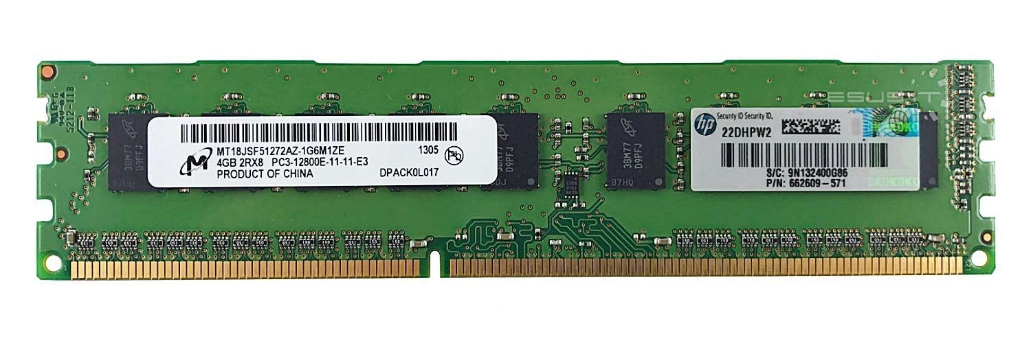 - RAM-geheugenkit 4GB bestaat uit 1x 4GB PC3-12800 DDR3 1600MHz 1.5 V ECC UNBUFFERED | HP P/N: 669322-B21 | 662609-571 | 684034-001