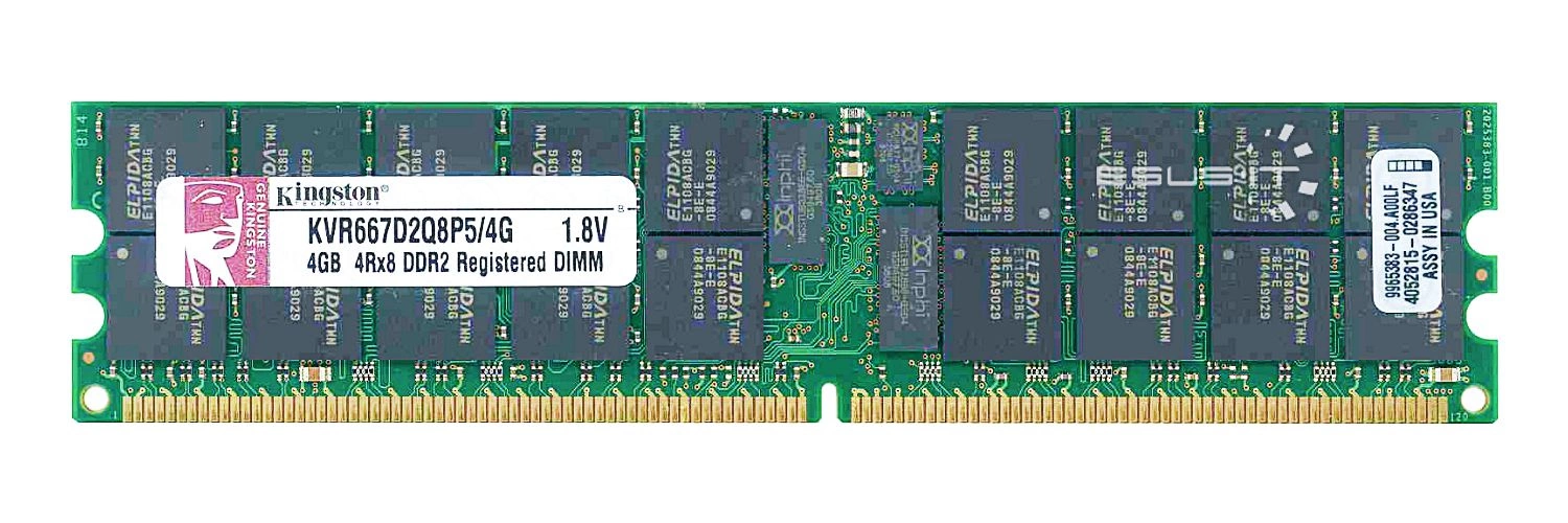 - RAM-geheugenkit 4 GB bestaat uit 1x 4GB 4Rx8 PC2-5300 DDR2 667MHz 1.8 V ECC REGISTERED | KVR667D2Q8P5/4G
