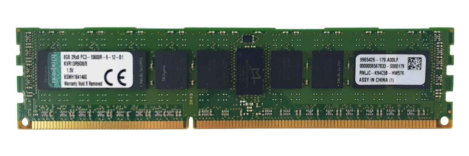 - RAM-geheugenkit 8 GB bestaat uit 1x 8GB PC3-10600 DDR3 1333MHz 1.5 V ECC REGISTERED | KVR13R9D8/8
