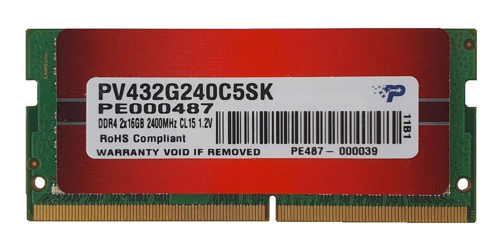 - RAM-geheugenkit 32 GB bestaat uit 2x 16GB SO-DIMM DDR4 2400MHz PC4-19200 | PV432G240C5SK