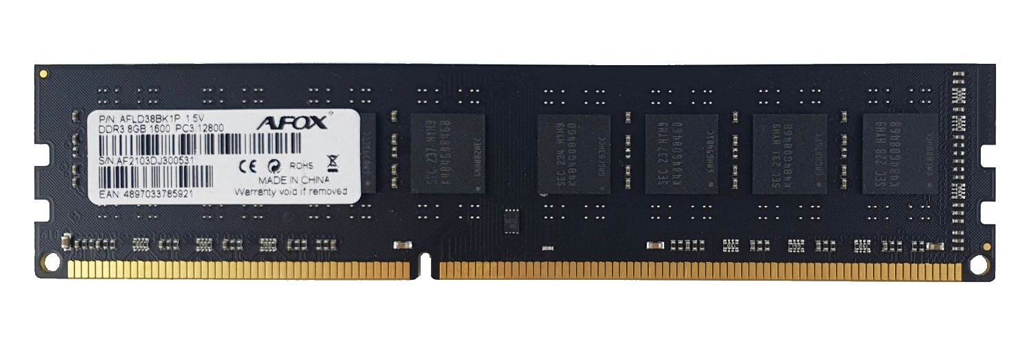 RAM-geheugen 1x 8GB Afox NON-ECC UNBUFFERED DDR3 1600MHz PC3-12800 UDIMM | AFLD38BK1P