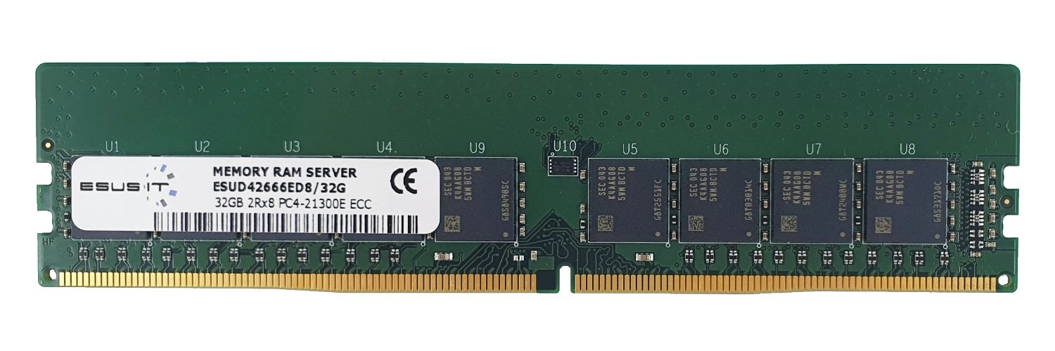 RAM-geheugen 1x 32GB ESUS IT ECC UNBUFFERED DDR4 2Rx8 2666MHz PC4-21300 UDIMM | ESUD42666ED8/32G