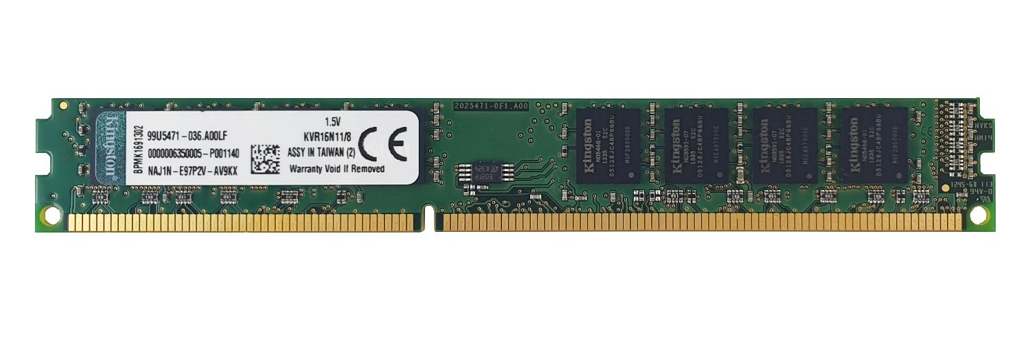 - RAM-geheugenkit 8 GB bestaat uit 1x 8GB PC3-12800 DDR3 1600MHz NON-ECC UNBUFFERED DIMM | KVR16N11/8