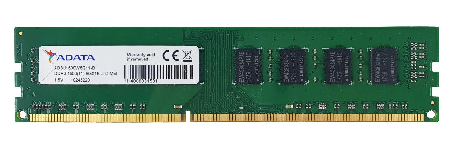 - RAM-geheugenkit 8 GB bestaat uit 1x 8GB PC3-12800 DDR3 1600MHz NON-ECC UNBUFFERED DIMM | AD3U1600W8G11-B