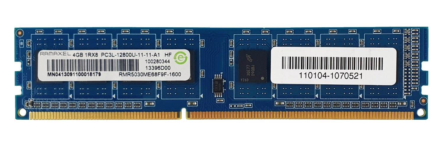 - RAM-geheugenkit 4 GB bestaat uit 1x 4GB PC3-12800 DDR3 1600MHz NON-ECC UNBUFFERED DIMM | RMR5030ME68F9F-160