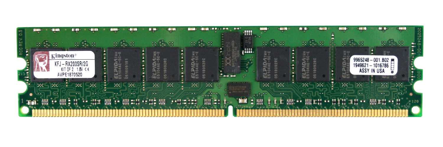 - RAM-geheugenkit 2 GB bestaat uit 1x 2GB PC2-3200 DDR2 400MHz 1.8 V ECC REGISTERED | KFJ-RX200SR/2G