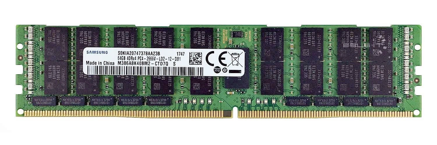- RAM-geheugenkit 64 GB bestaat uit 1x 64GB 4Rx4 PC4-21300 DDR4 2666MHz 1.2 V ECC LOAD REDUCED DIMM | M386A8K40CM2-CTD